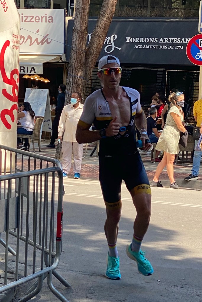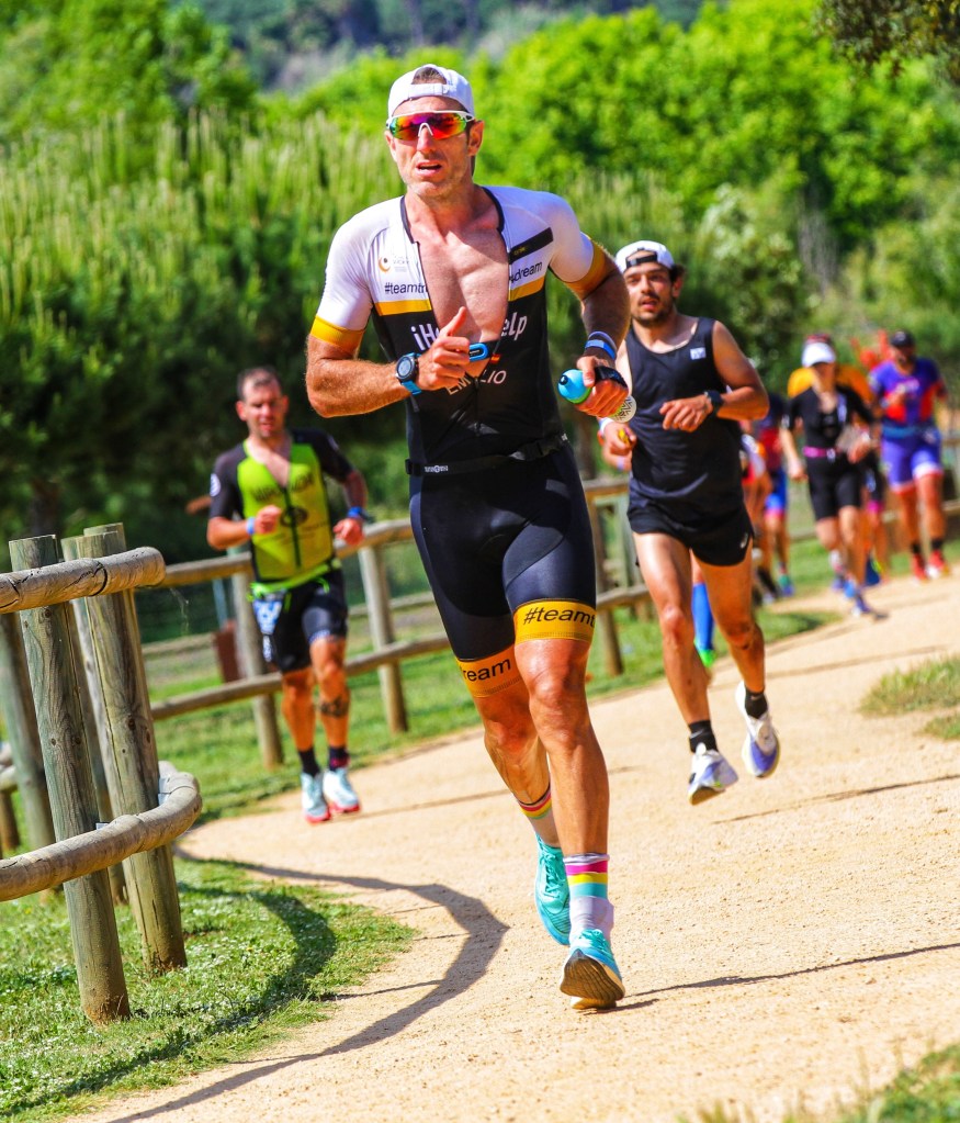 Bajada increíble, repecho duro. Así 4 o 5 veces hasta llegar a San Feliu de Guixols y de ahí a Playa de Aro. Poco más de 6 horas y unas sensaciones buenísimas para correr. 0,73 de IF, es decir, por debajo de lo que había estipulado, por lo tanto no tenía excusa para hacer una buena maratón. Si había ahorrado en bici, era el momento de morir corriendo. La entrada a Playa de Aro estaba espectacular. Llegué a la T2 con un ambientazo que hizo que me viniera arriba y casi me emocionara. Cuántas veces había pensado en este momento. Había hecho de nuevo los 180 kilómetros de un Ironman con las mejores sensaciones que jamás había tenido encima de la bici y ahora me tocaba correr la ansiada maratón.