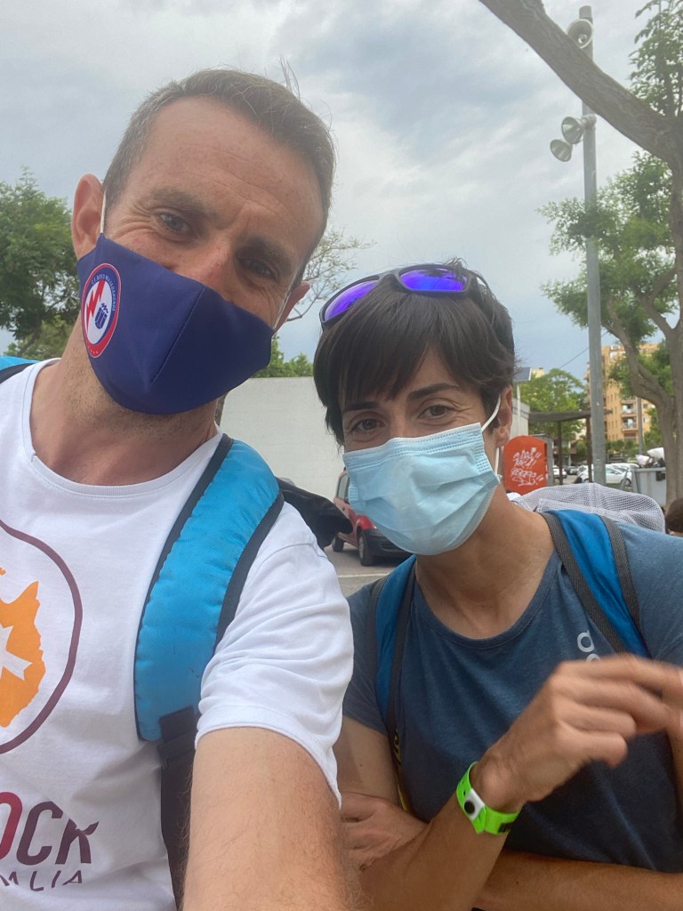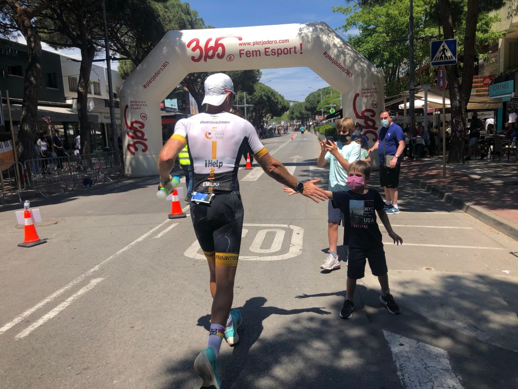 Iba bien. Consciente de la dificultad, pero tenía buenas sensaciones. Después de la zona pestosa de tierra, la entrada en Playa de Aro y el paseo marítimo era otro rollo. Bastante ambiente y muchos ánimos. Justo lo que necesitamos en estas situaciones. Me crucé con mis hijos, mi madre y mi primo. Felicidad absoluta, les choqué la mano y me decían que iba perfecto, con buena cara ( es lo que más le preocupa a mi madre). De entrada al paseo estaba otro punto importante de apoyo. Allí se encontraba grabando y gritando Susana, la mujer de Iván Tejada, grandes amigos del crack de Javi Pardo, un tío al que tengo un cariño especial por lo que vivimos juntos en Lanzarote 2016.