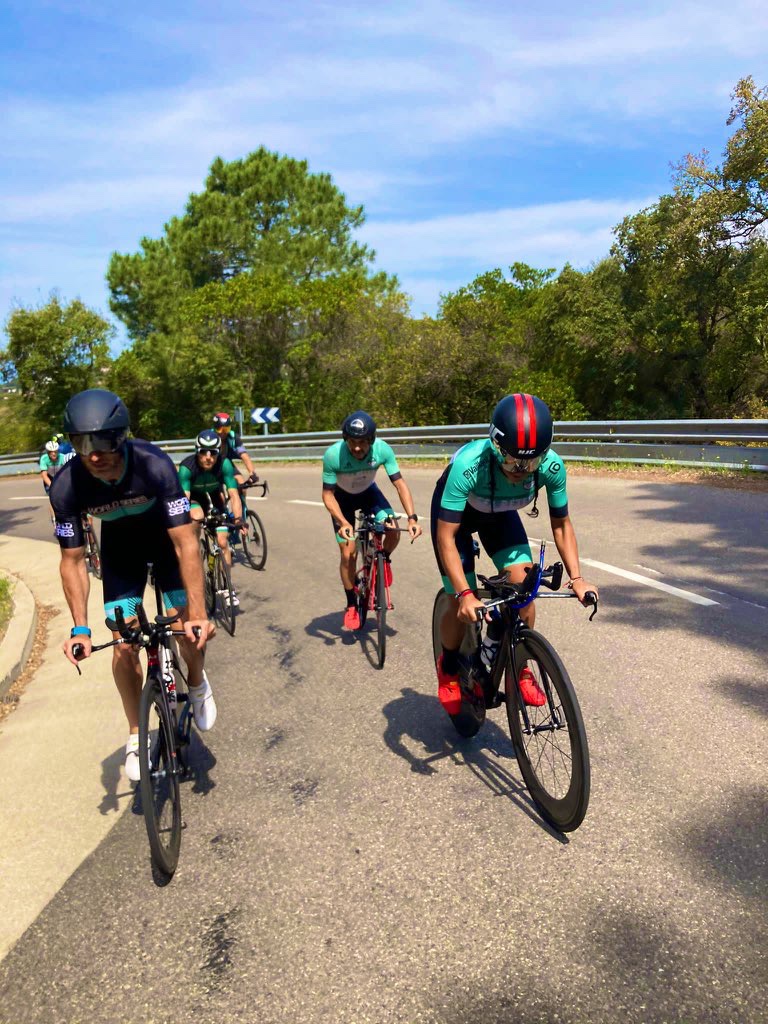 Me preocupaba el circuito de bici. La subida y la bajada a Sant Grau era un mono tema entre los participantes y necesitaba saber algo más sobre ella. Cogí la bici para hacer las 2 horas que Santamaría me había puesto con un bloque fuerte de 15 minutos. Si era posible ver algo del recorrido, mucho mejor. Diego Infante me lo puso en bandeja. Me escribió y me dijo que salían con el Club de Tri de Bétera para subir el primer puerto, bajarlo e ir a Playa de Aro. Me valía el plan.